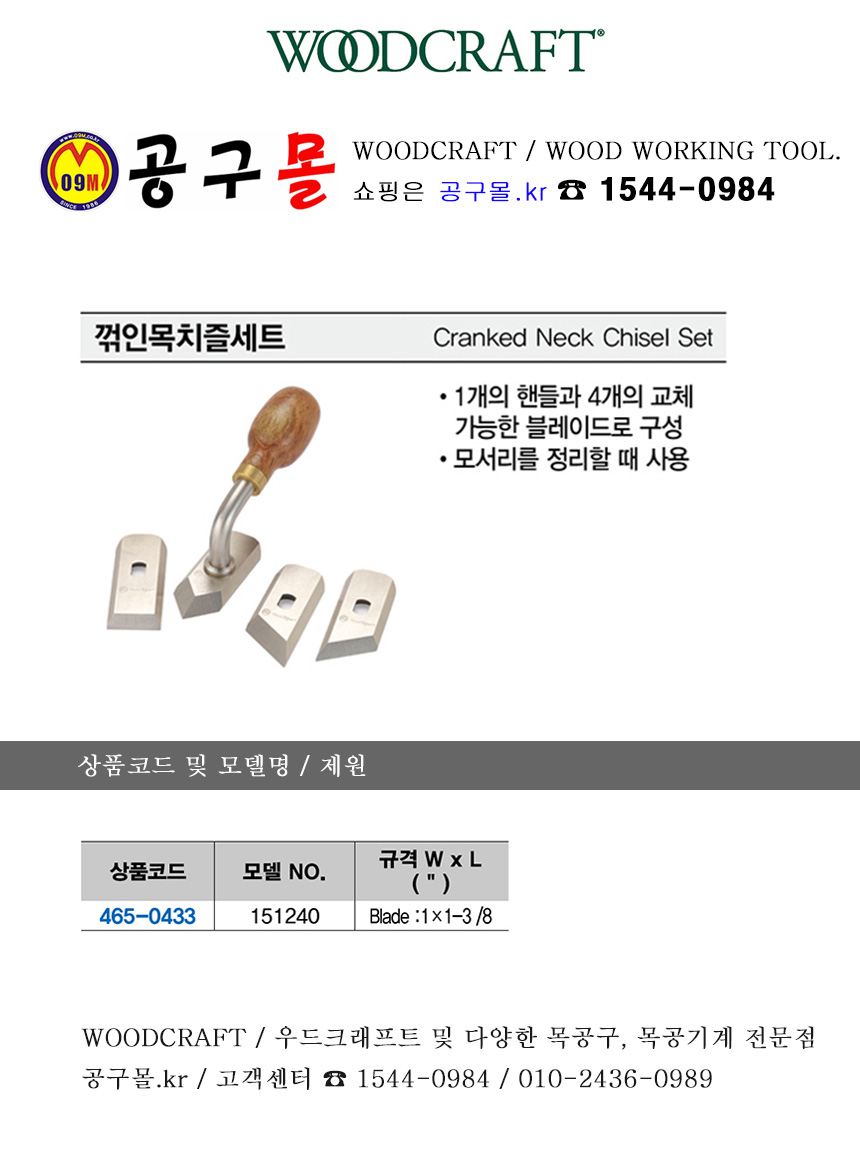 꺽인 목 치즐세트 151240, 465-0433, WOODCRAFT, Plane, 우드크래프트, 작업대패, 손대패
