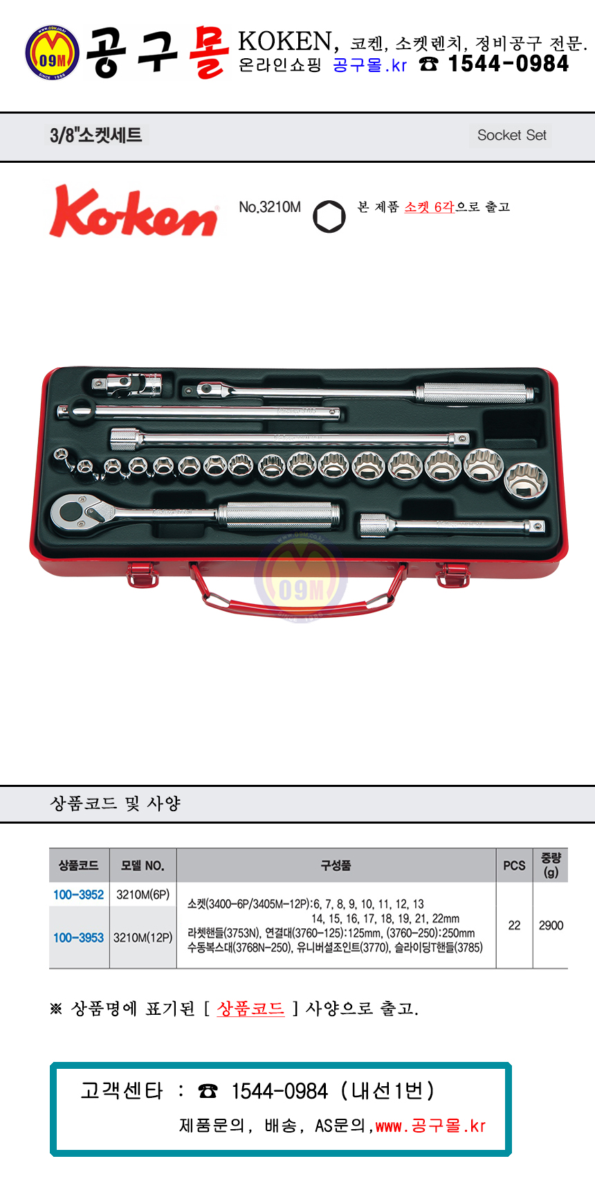 코켄 소켓세트(3/8-12각) 3210M-12P (22PCS) 3405M, KOKEN, 복스세트, 소켓세트,100-3953