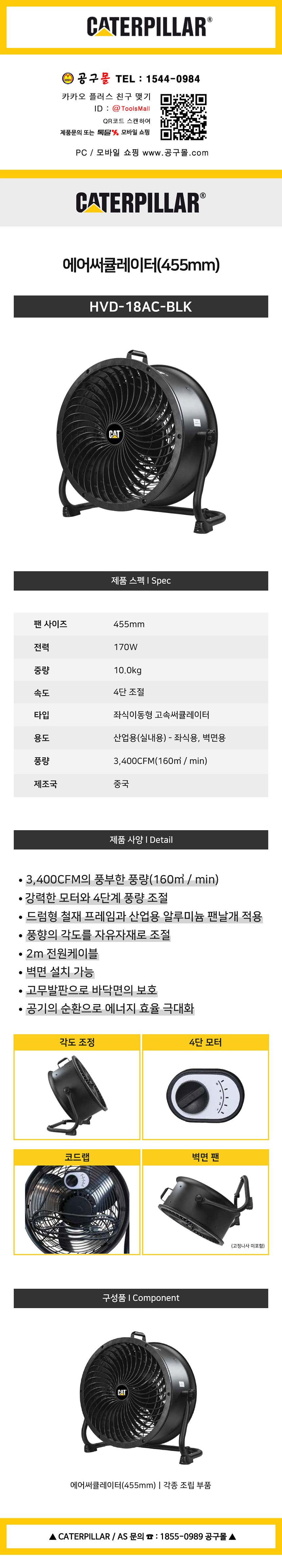 캐터필라 에어써큘레이터 455mm HVD-18AC-BLK 170W-10Kg 초고속선풍기, CATERPILLAR