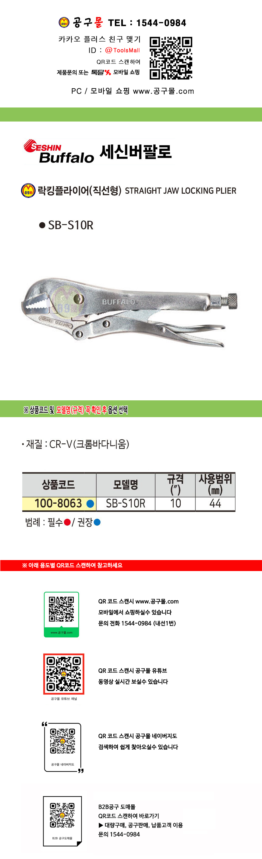 세신 락킹플라이어(직선형) SB-S10R SESHIN 버팔로, 울산공구몰 100-8063