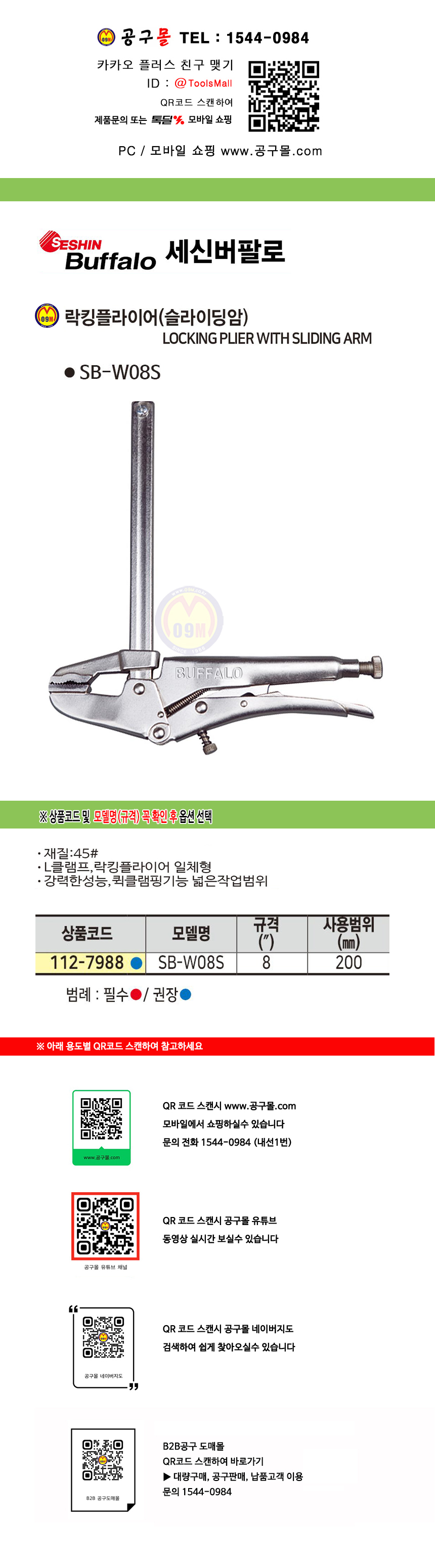 세신 락킹플라이어(슬라이딩암) SB-W08S SESHIN 버팔로, 울산공구몰 112-7988