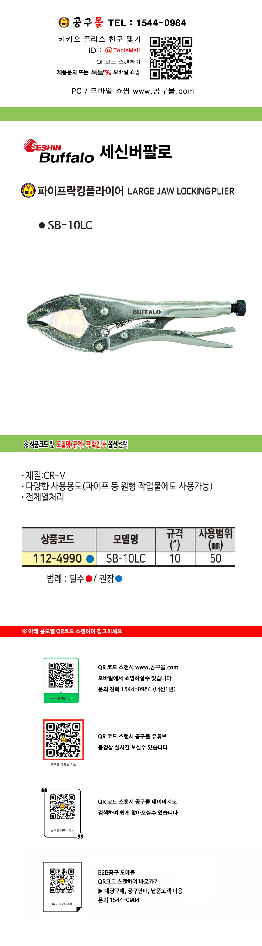 세신 파이프락킹플라이어 SB-10LC SESHIN 버팔로, 울산공구몰 112-4990