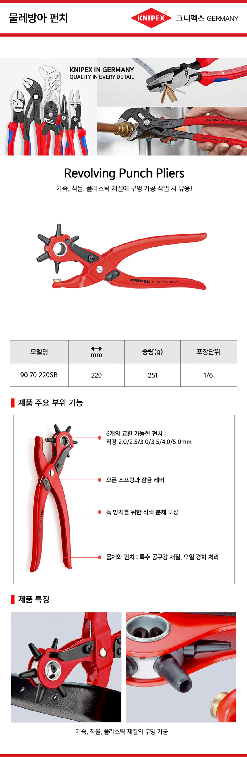 크니펙스 물레방아펀치 90-70-220SB Knipex 로터리펀치, 밸트천공 독일공구, 공구몰추천 101001029001