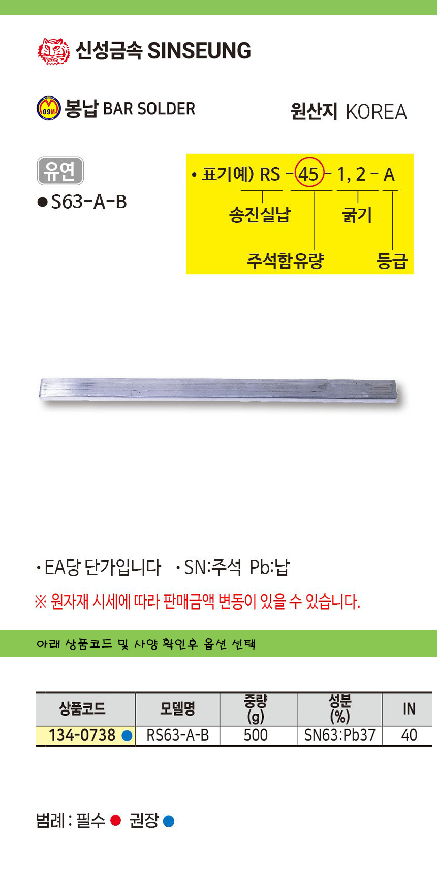 봉납(유연) S63S B20(500g) LT소재/공구몰/인두기/실납/납,1341153