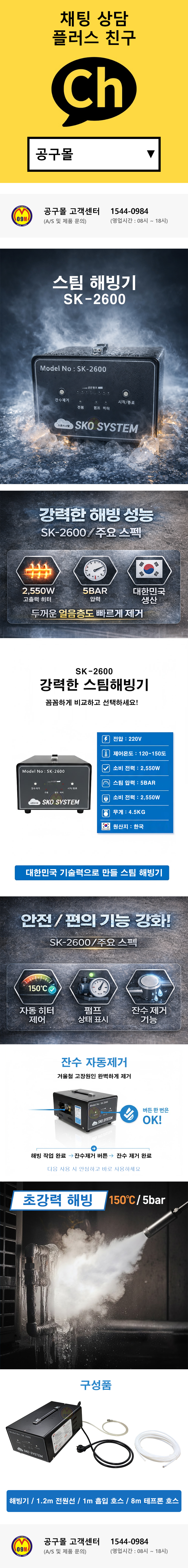 스코시스템 스팀세척(해빙)기 SK-2600 (2550W) 입주, 주방, 찌든때 스팀기 청소
