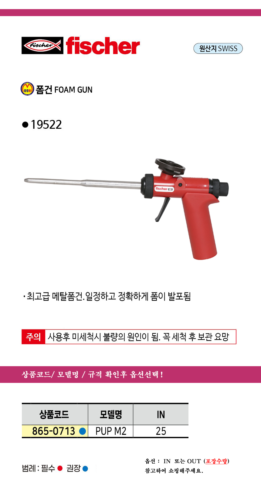 피셔 폼건 PUP M2 / NO.19522 fischer, 스위스제작, 공구몰 865-0713