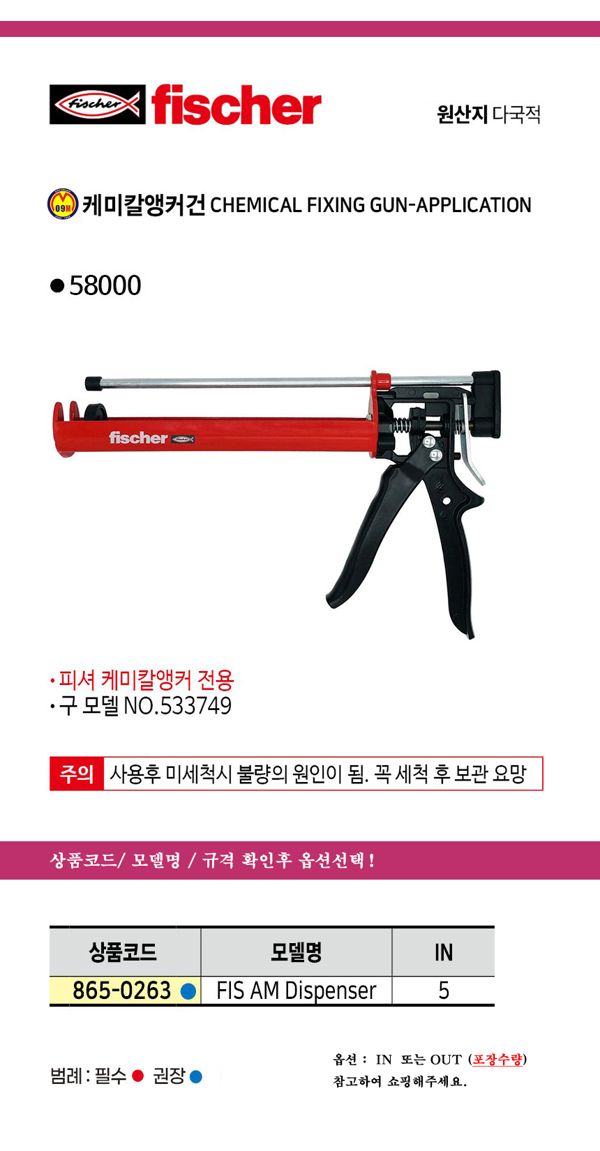 피셔 케미칼앵커건 FIS AM DISPENSER / NO.58000 fischer, 공구몰 865-0263