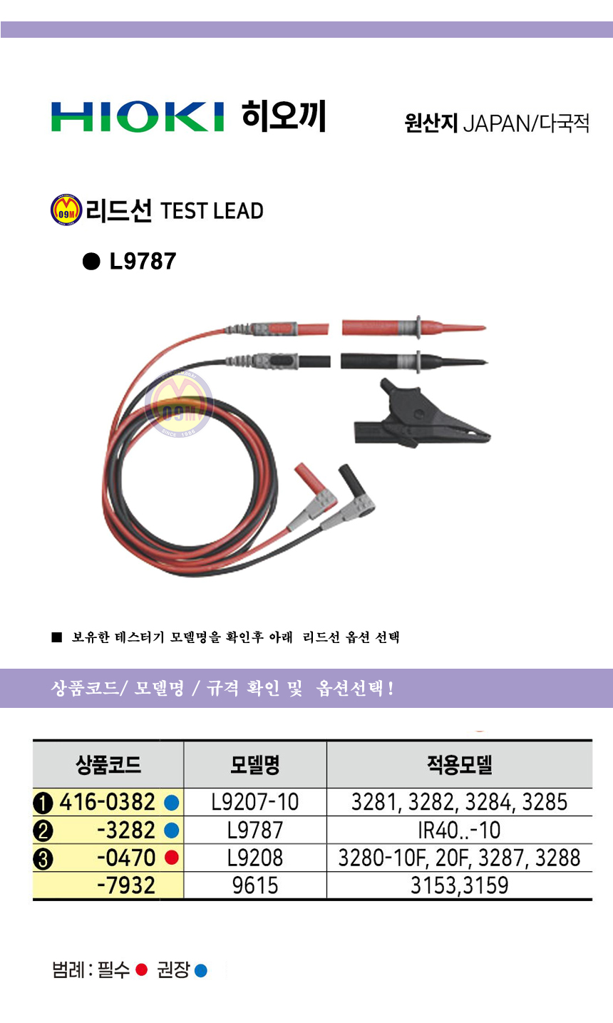 히오키 리드선(테스타기용) 9207/ 9208 (3281 3282/ 3280-10F 3288 겸용) HIOKI 공구몰, 416-0382