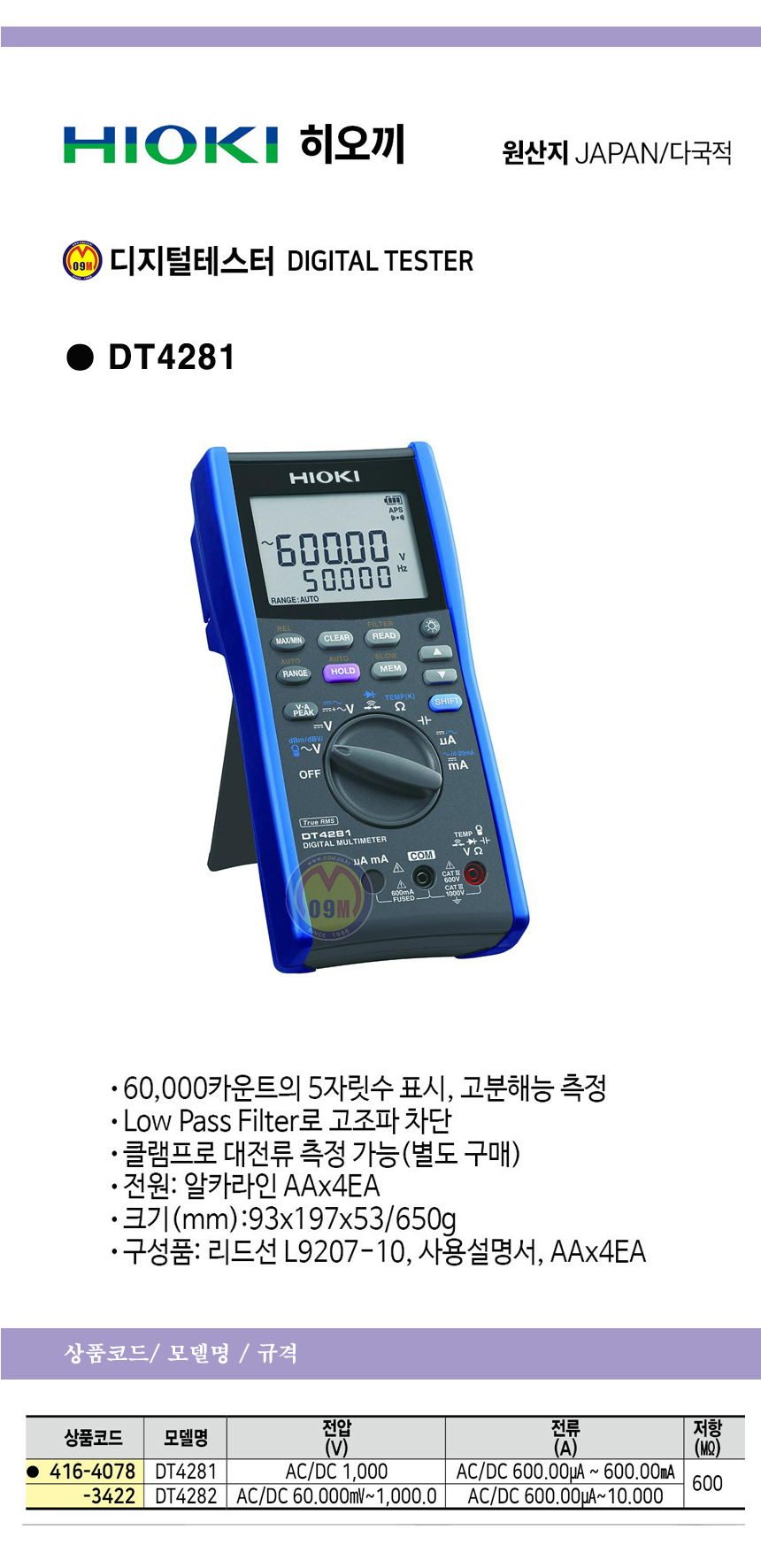 히오끼 디지털테스터 DT4281 HIOKI ,테스타기, 공구몰 416-4078