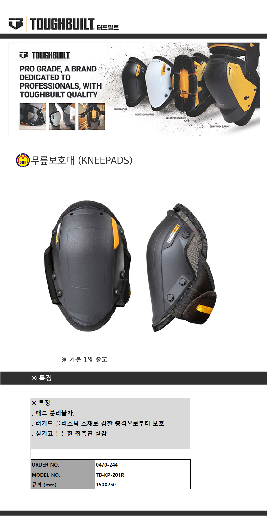 터프빌트 무릎보호대 세트 TB-KP-G203 (1쌍) (TOUGH BUILT) 고무 / 탈부착가능 0477397