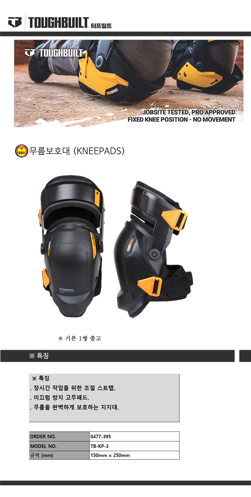 터프빌트 무릎보호대(단품) TB-KP-2B (1쌍) 기본 / 탈부착불가 (TOUGH BUILT)0477404
