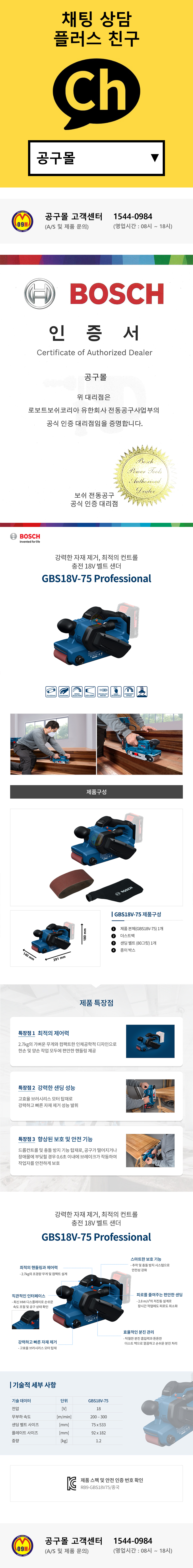 보쉬 18V 충전 밸트샌더 GBS18-75 (18V-베어툴) 벨트샌더