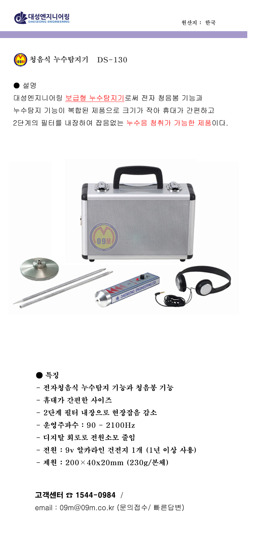 대성 청음식 누수탐지기 DS-130 청음봉기능 대성엔지니어링