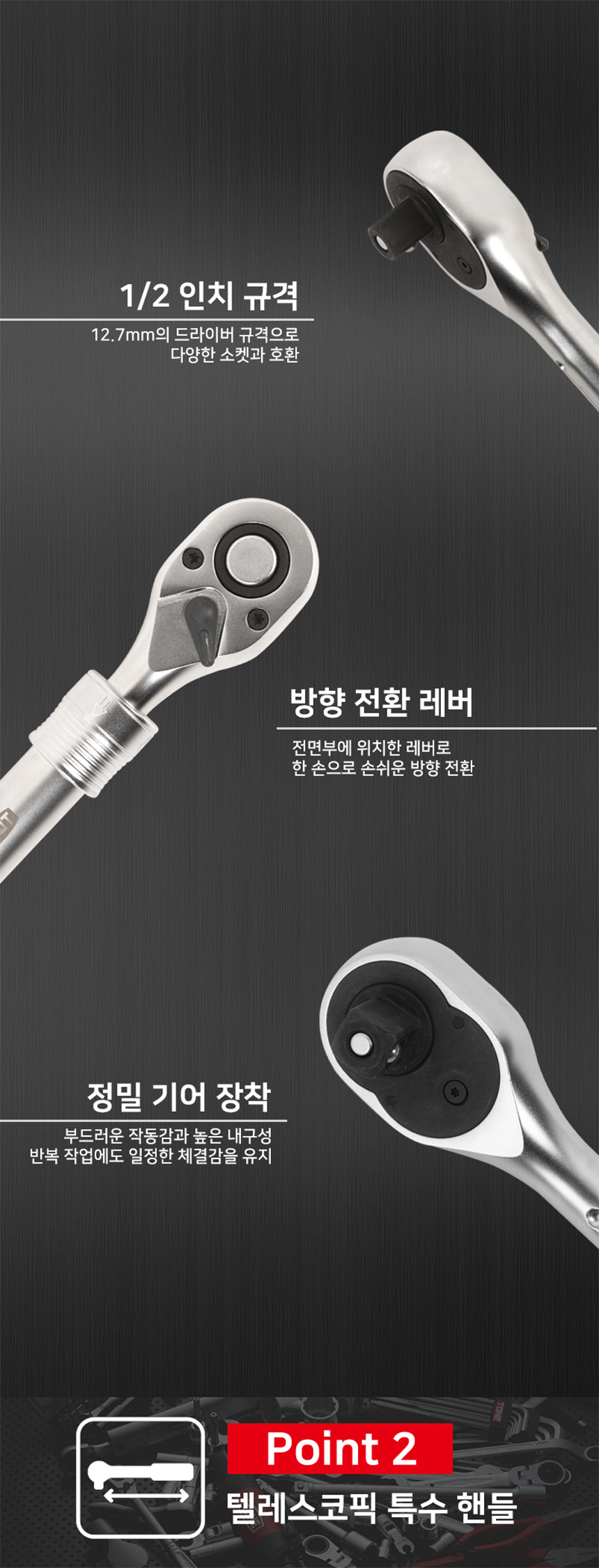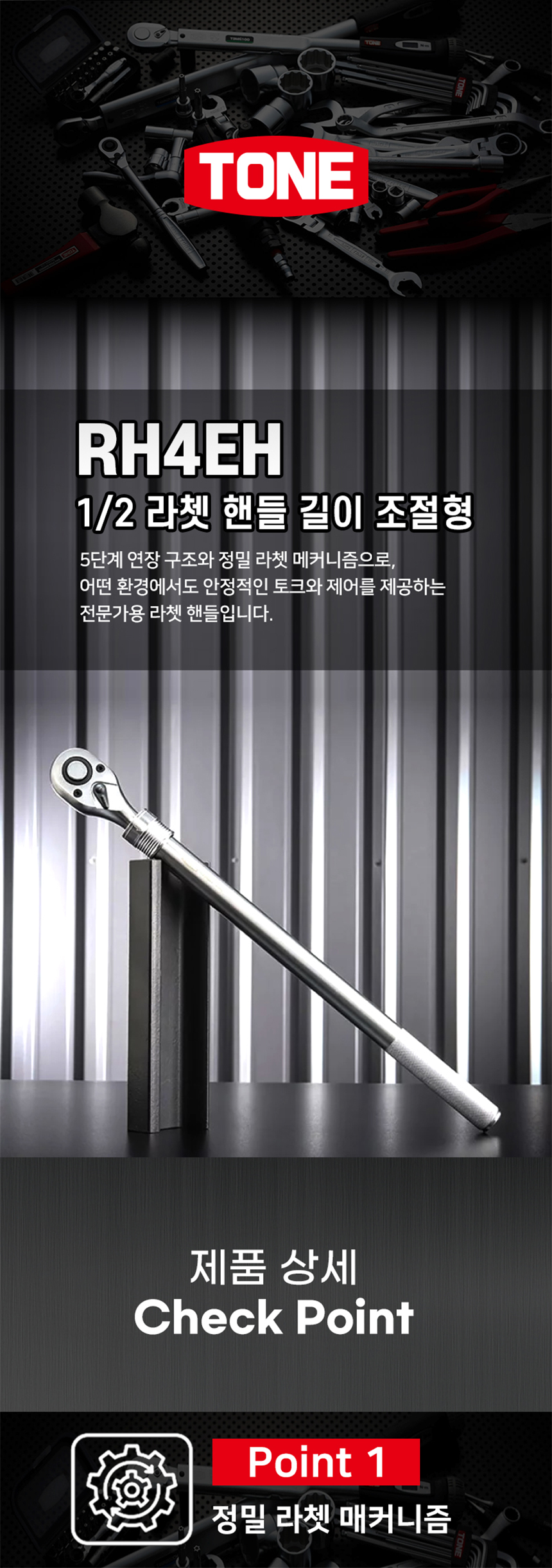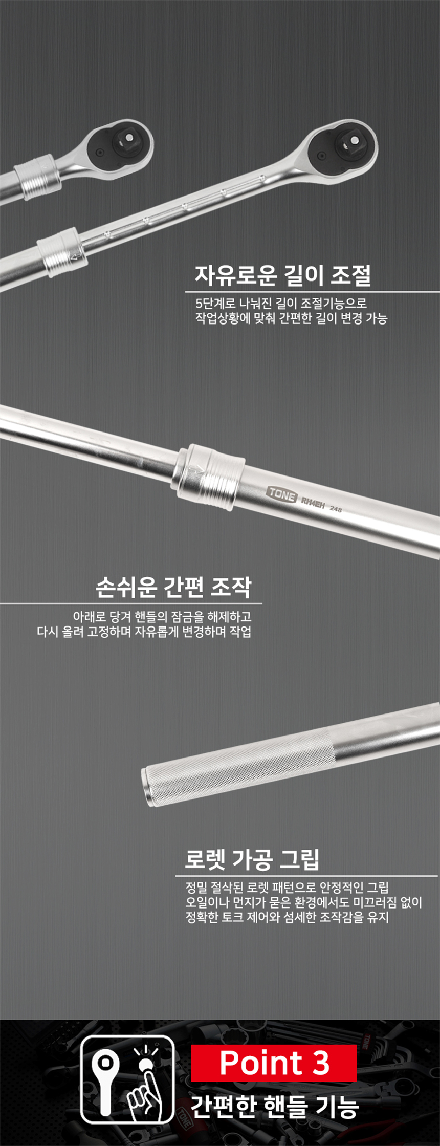 토네 길이조정형 라쳇핸들 RH4EH (1/2 12.7mm 420-560mm) 깔깔이 복스라쳇