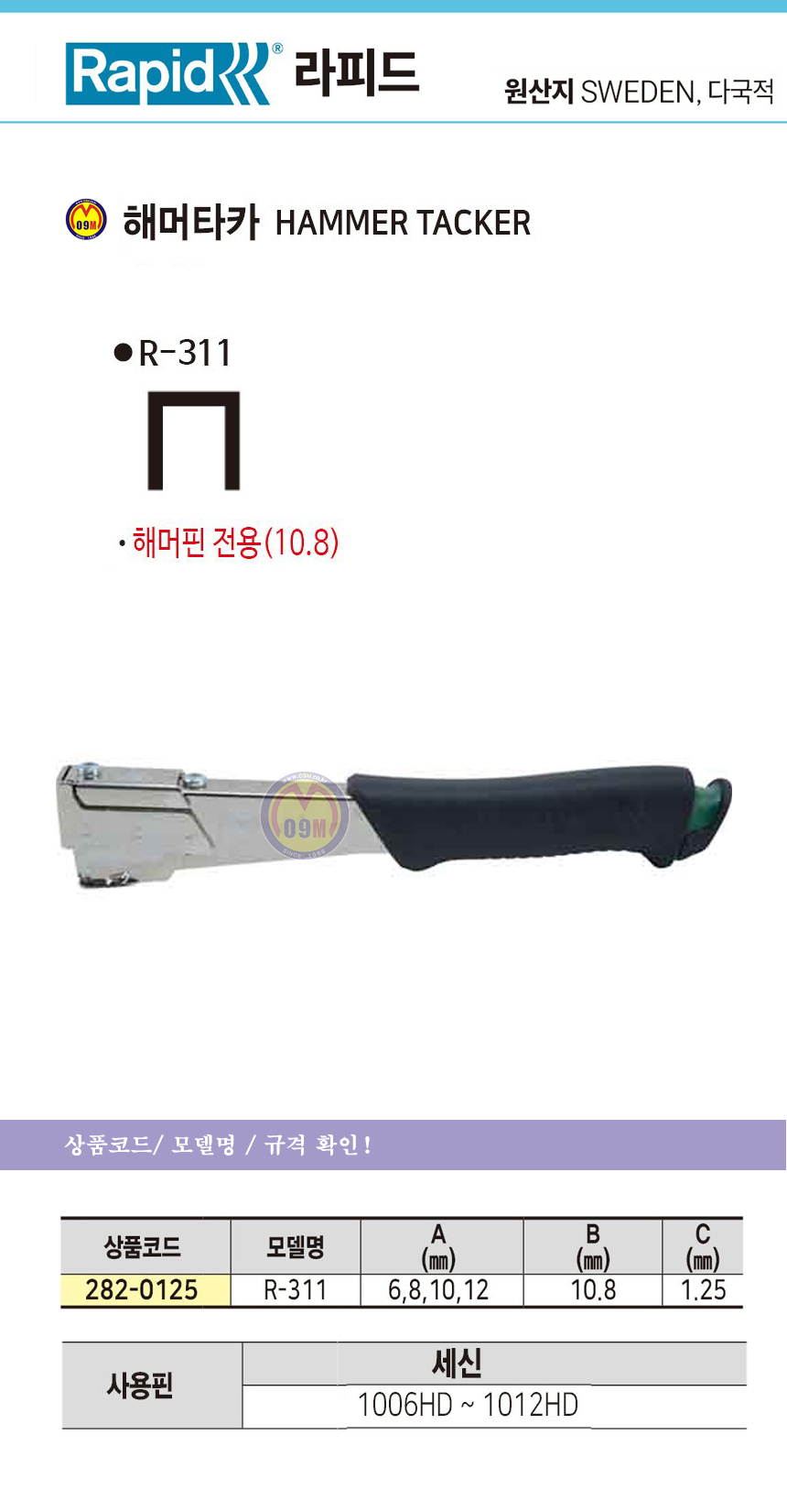 라피드 해머타카(해머핀) R-311 (6~12) RAPID, 손타카 282-0125