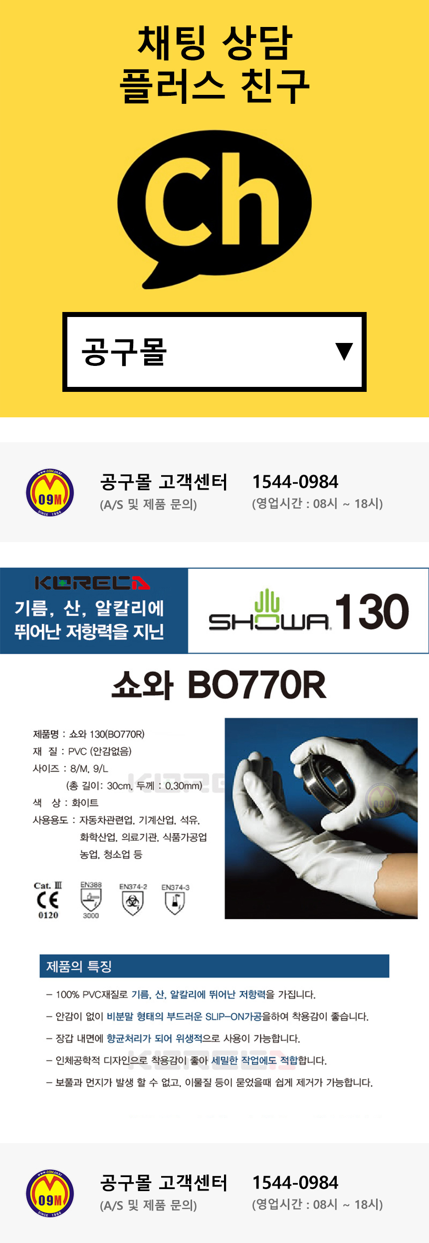 쇼와 PVC코팅장갑 No.170 (M L 사이즈-손가락2중코팅)