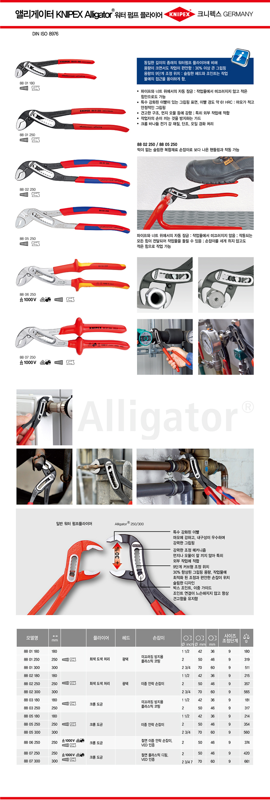 크니펙스 첼라(엘리게이터) 88-01-180, 180SB, 250, 250SB (180-250mm) Knipex 워터펌프플라이어 공구몰 101001020337