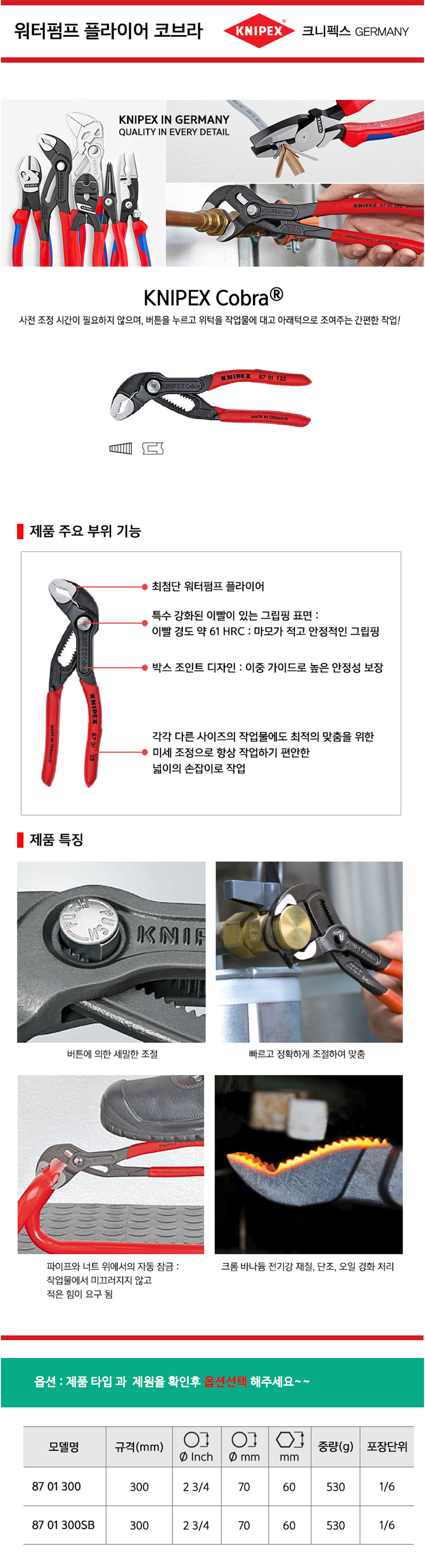 크니펙스 첼라(코브라) 87-01-300, 87-01-300SB KNIPEX 독일공구 공구몰 101001020305