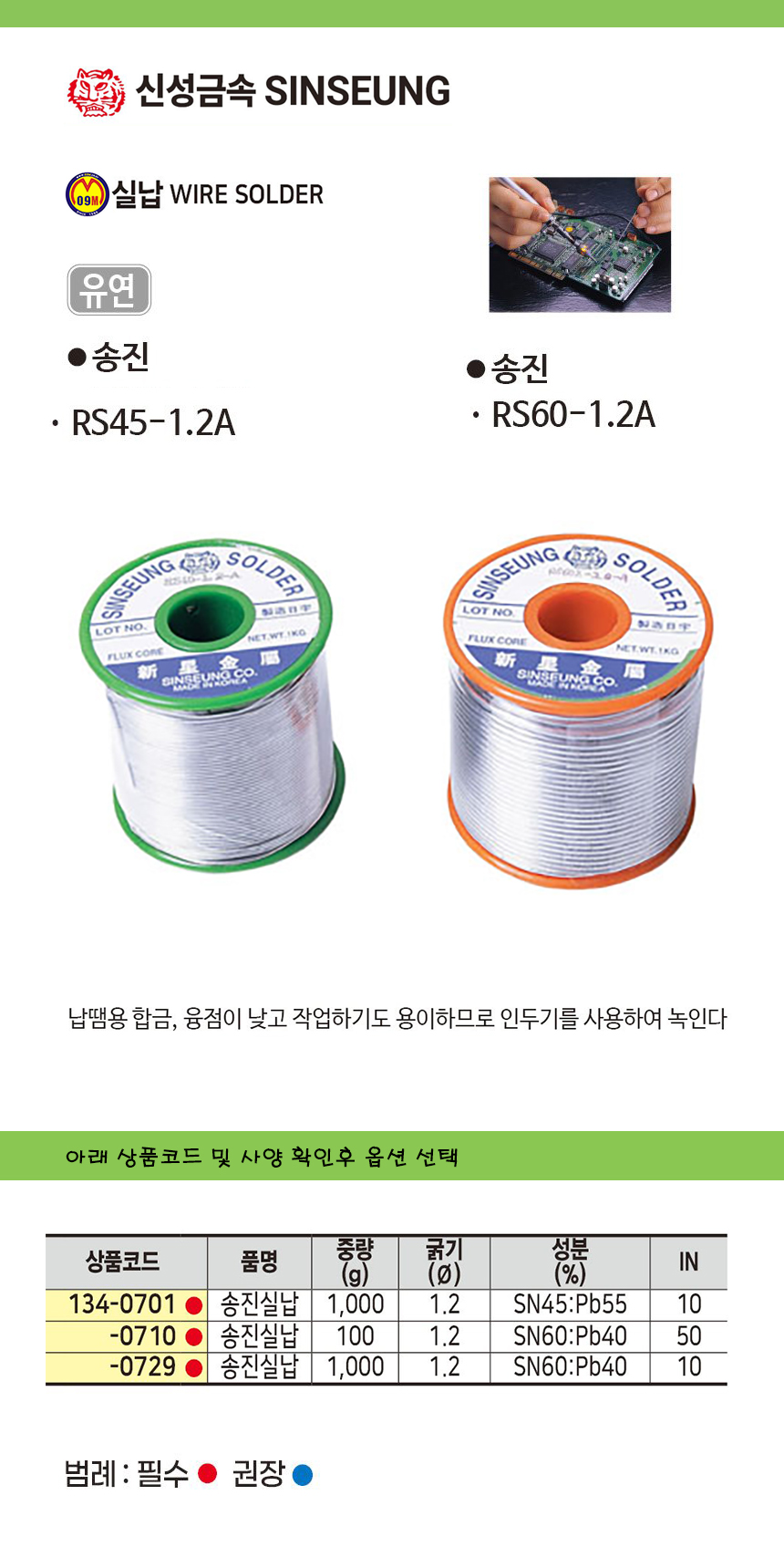 신성금속 실납(유연) 송진-70G-1.2mm (SN40, SN45) 송진실납, 납땜납, 인두납 , 공구몰 추천 134-0677