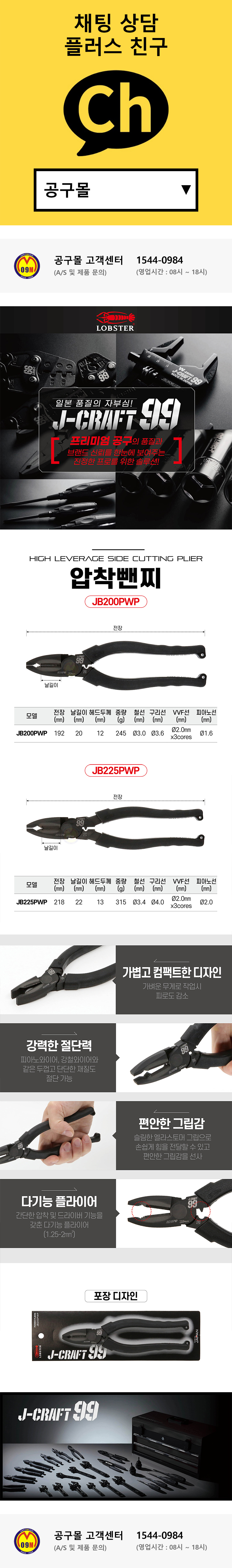 로보스터 CRAFT99 블랙압착펜치 JB200PWP JB225PWP 뺀치