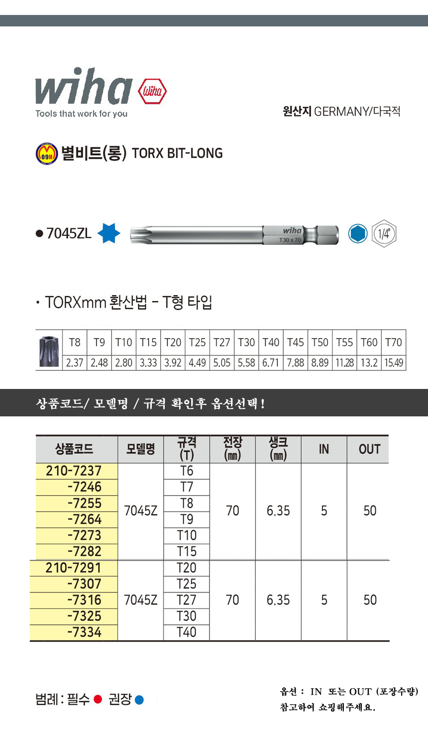 이하 별비트(롱) 7045ZL T6(90)/ T10(110)/ T40(150) WIHA, 별빗트, 공구몰 211-5856