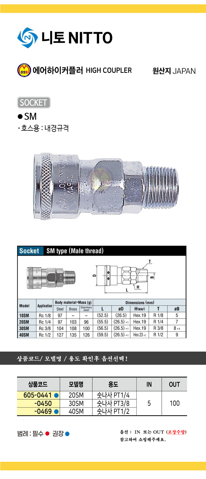 니토 하이커플러(SM) 20SM/ 30SM/ 40SM NITTO 공구몰 SOCKET 605-0441