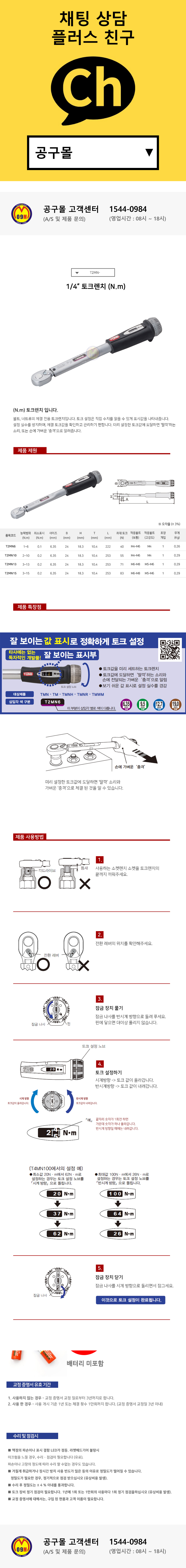 토네 토크렌치 T2MN6 10 13 15 (1/4 6.35) 1-6 3-15Nm 토크조절기