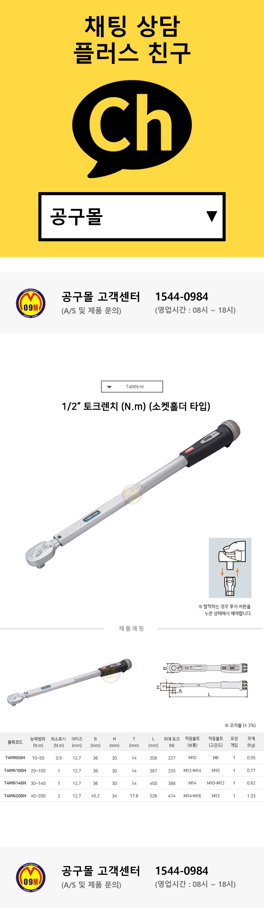 토네 토크렌치 T4MN-H 시리즈 (1/2 12.7mm) 소켓홀더
