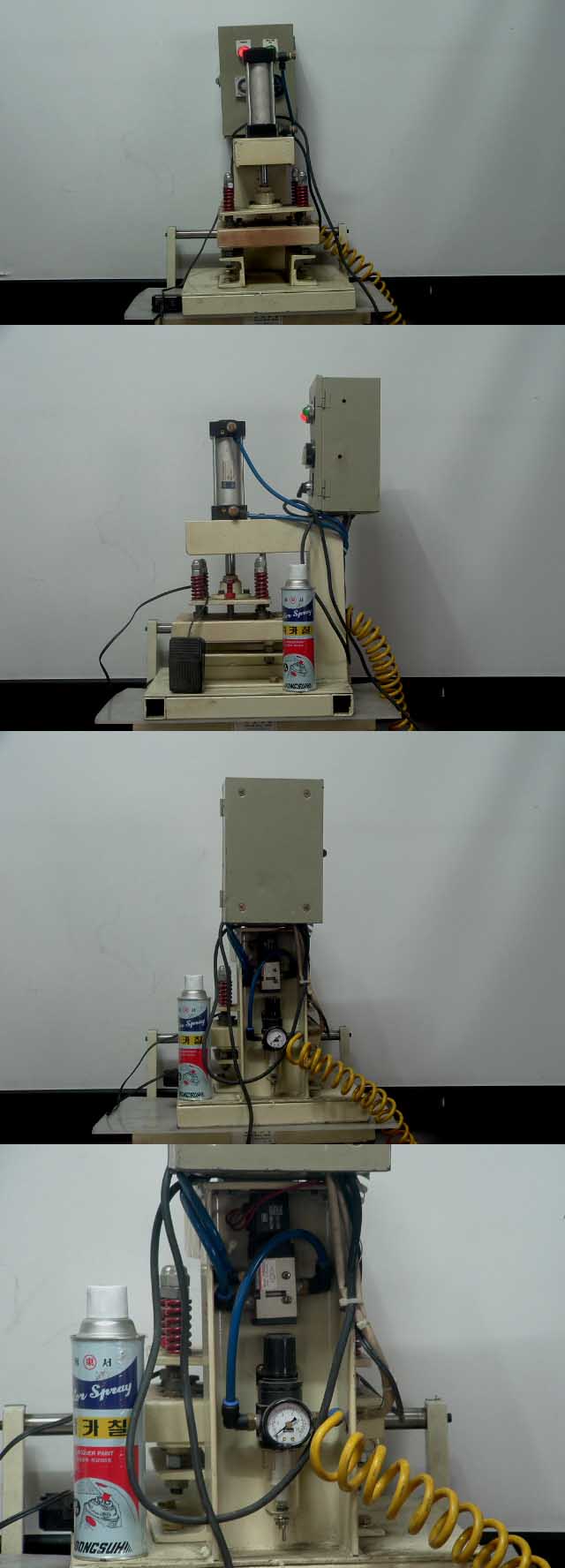 공압 비닐용착 에어프레스 입니다. 동작외관양호 합니다. 사진은 실사 입니다. 온도는 최대 320도 입니다. 220볼트 입니다