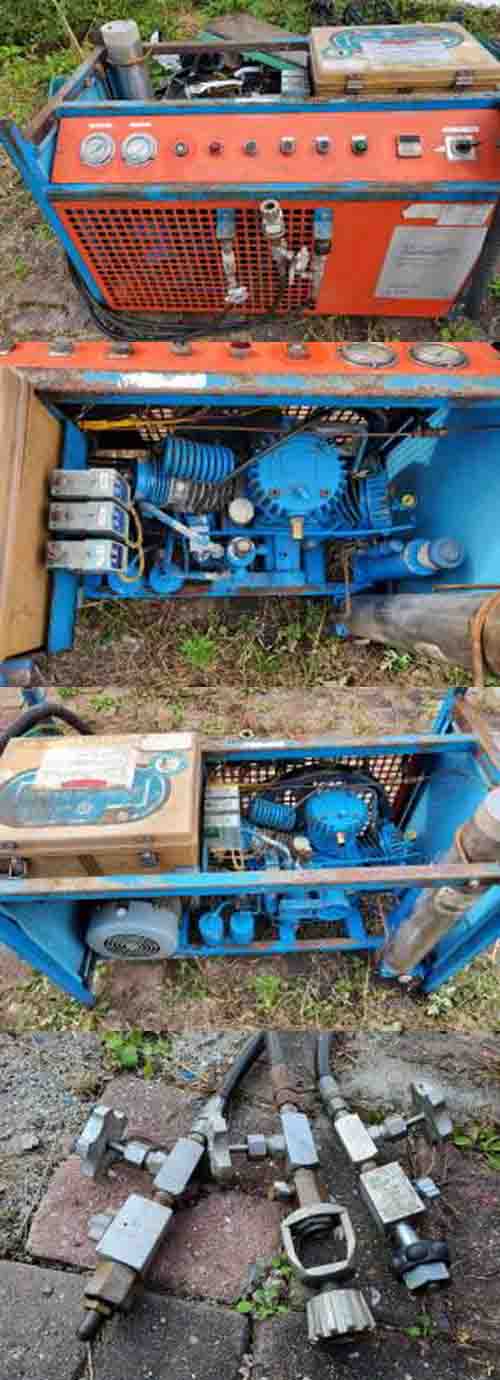 명수리 잠수다이버 고압 에어콤프레서 입니다 동작외관 양호 합니다 전원:3상380볼트.5마력입니다 사진은 실사 입니다