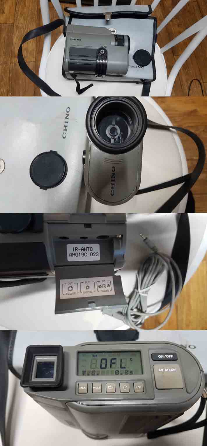 JAPAN 휴대형CHINO IR- AH 비접촉식 디지탈 방사 온도계 입니다 CHINO IR- AH 는, - 50℃ 의 저온으로부터 3000℃ 의 고온범위까지 온도를 측정할 수 있습니다 별로사용하지않고 사무실창고에 보관하던 장비 입니다 소형로 제작하느라 구입한것 입니다 분실한줄로 알다 차고정리하다보니 한쪽구석에 있던것입입니다 가방과 rs232 메뉴얼은 찾다포기 본체와가방케이블 있읍니다 외관 동작모두 정상 입니다 사진은 실사 입니다 가격:50만원 착불 연락처:010-=5251-1533 이기수 기업은행:260-000893-03-012