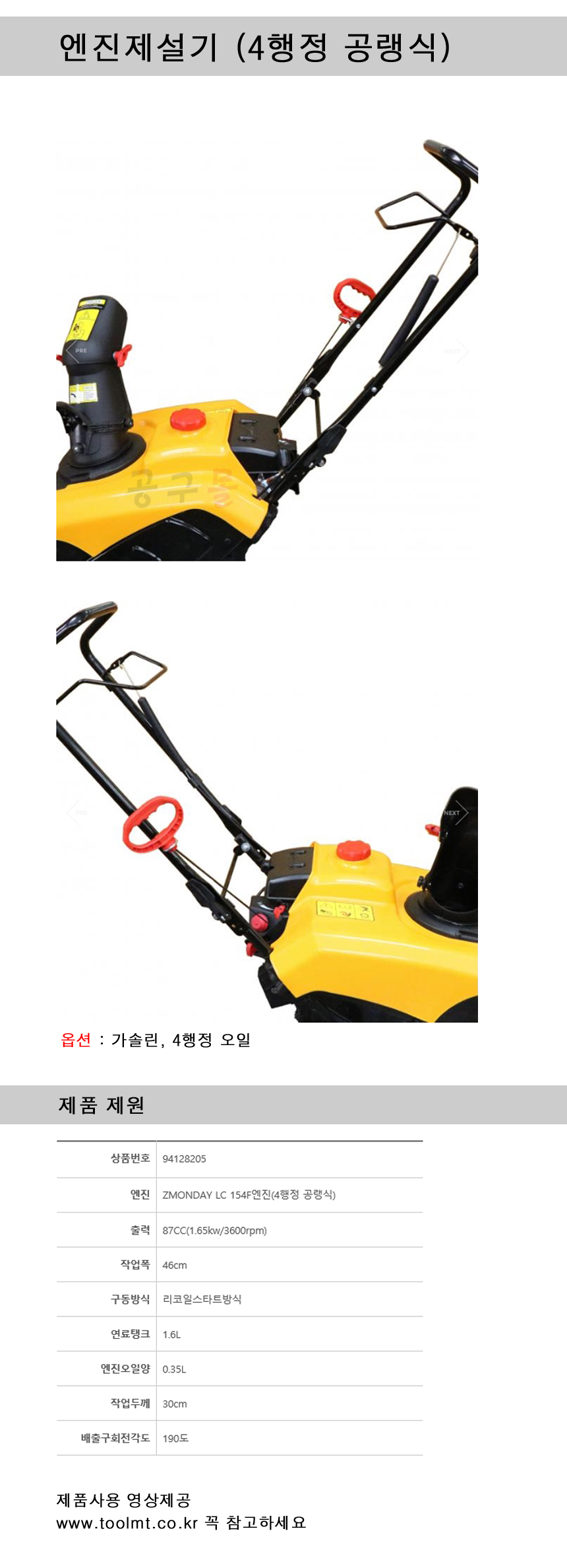 엔진제설기 LC154F (87cc,3600RPM) ZMONDAY, 공구몰, 제설기