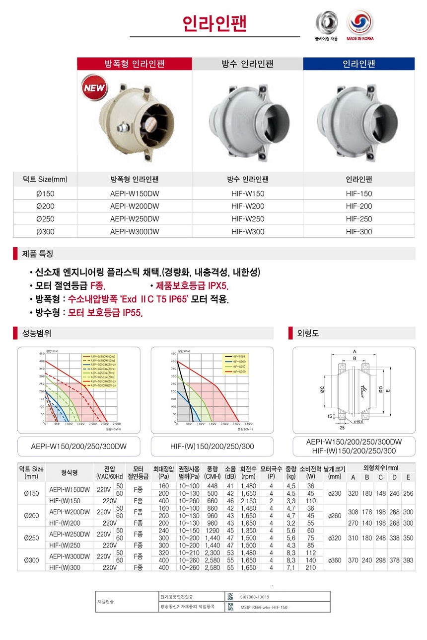 AEPI-W200DW 방폭모터적용인라인팬,한일전기,AEPIW200DW