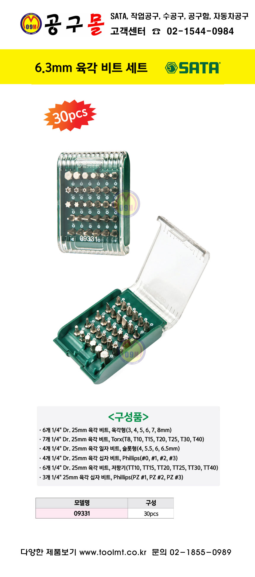 육각비트세트 09331 (6.3mm 30Pcs) SATA, 사타, 비트세트 별비트세트, 6각비트세트, 울산공구몰
