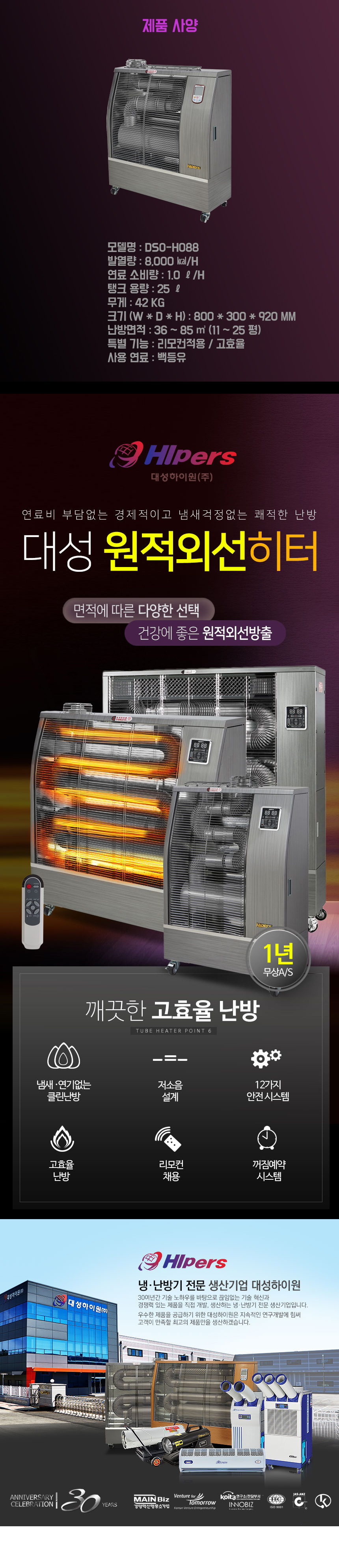 대성하이원 원적외석히터(백등유) DSO-H268F (50-85평) 난방기구, DSOH268F