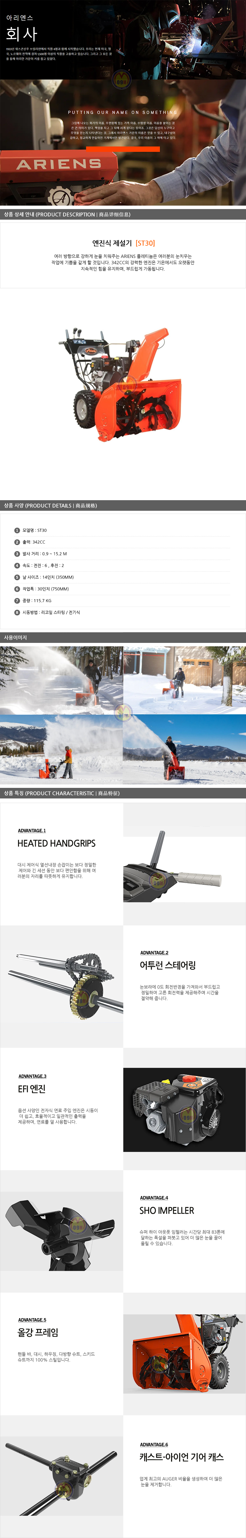 ARIENS 엔진식 제설기 ST30 (342CC) , 아리엔스, 제설기계, 눈치운는기계, 동절기장비