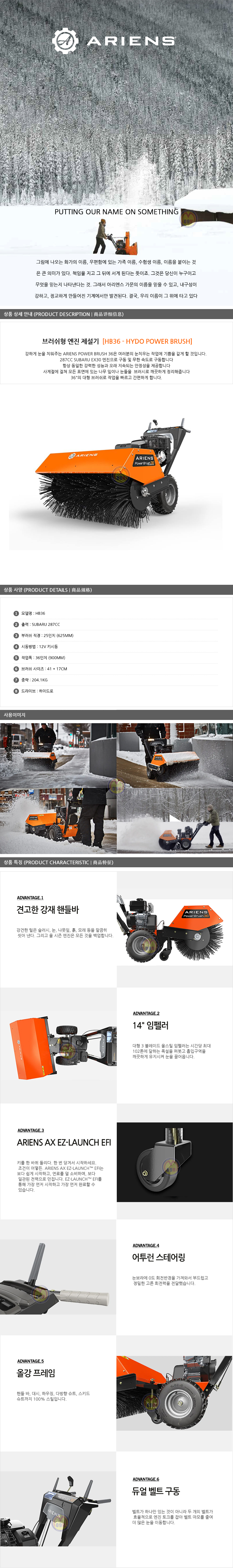 ARIENS 엔진식 제설기 브러쉬 HB36 (287CC) 하이드로브러쉬 키시동 , 아리엔스, 제설기계, 눈치운는기계, 동절기장비