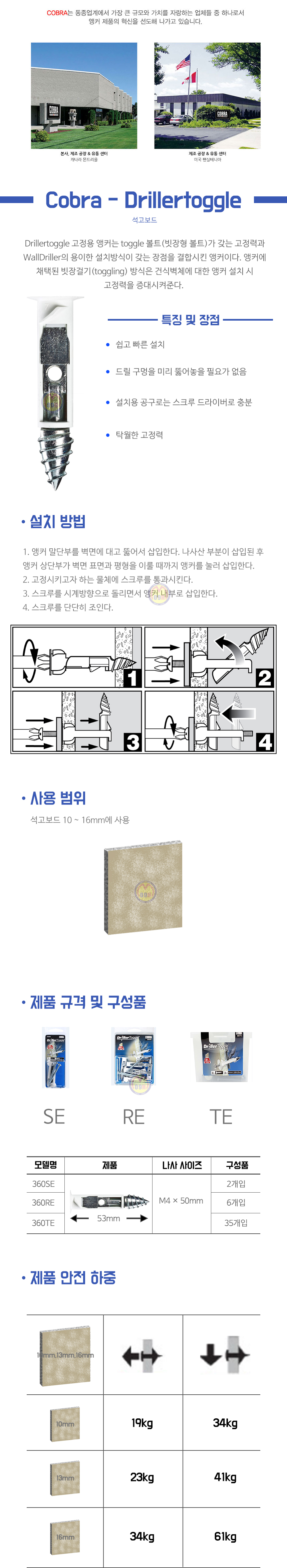 코브라 드릴러토글 석고보드 앙카, 석도고보드피스, 석고피스