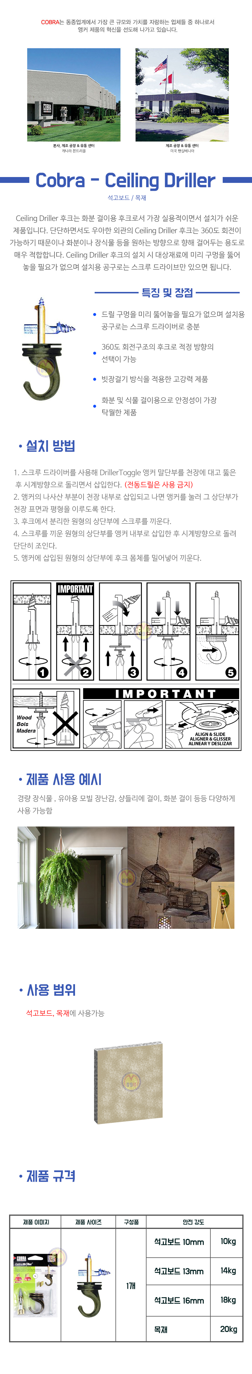 코브라 실링 드릴러 3234F, 목재용, 석고보드용, 인테리어소품, 인테리어용