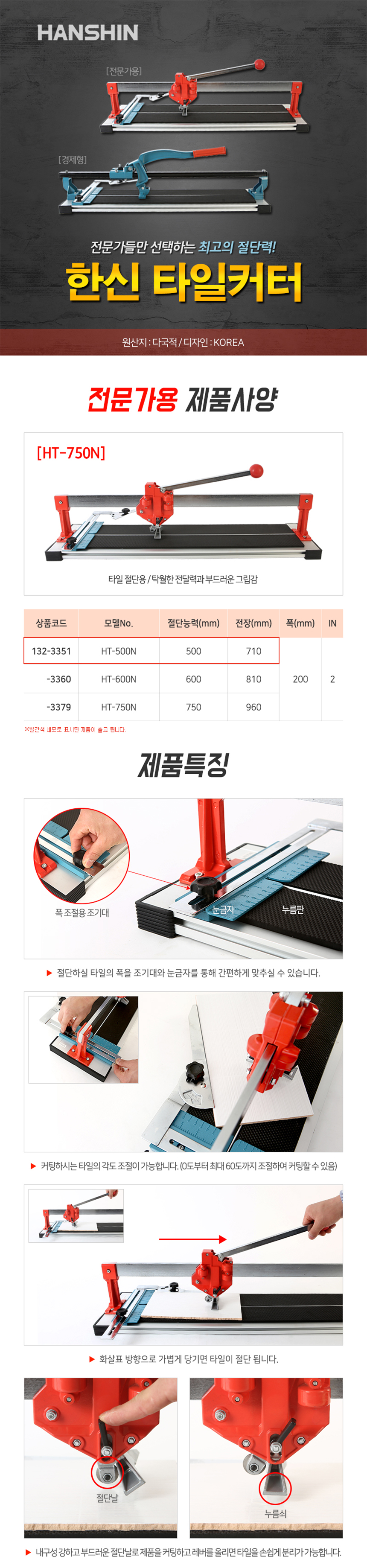 한신 타일커터(N) HT-500N 외날 (전문가용) , 타일캇타,타일컷터