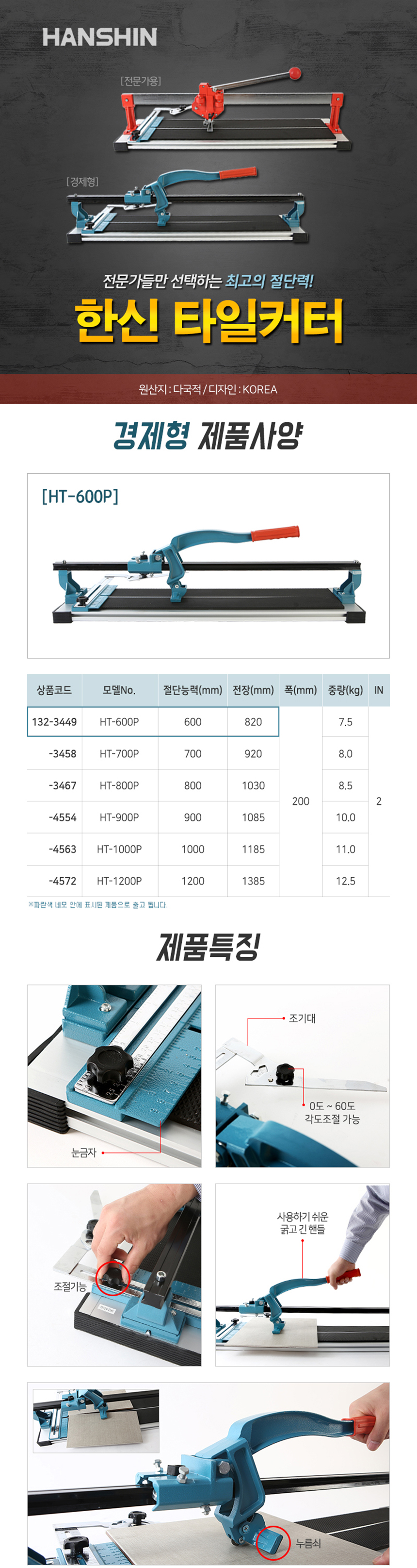한신 타일커터(P) HT-600P 외줄 (경제형) , 타일캇타,타일컷터