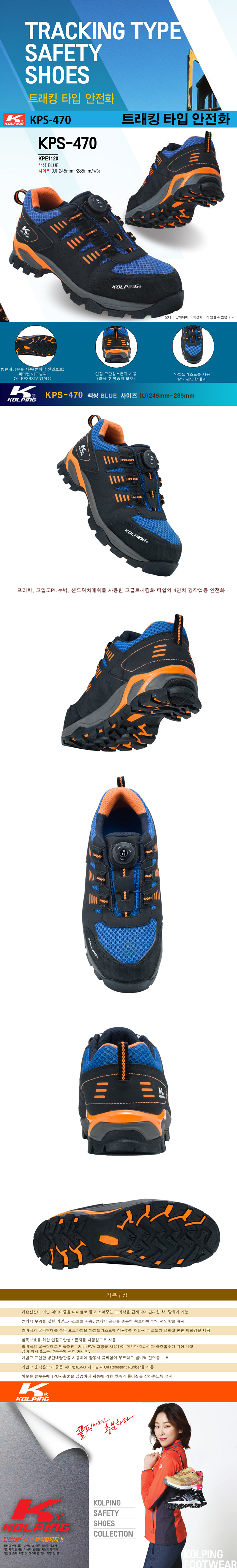 콜핑 (4)100mm 다이얼 안전화 KPS-470 (250mm~255mm) 트래킹 타입, 경량화 안전화