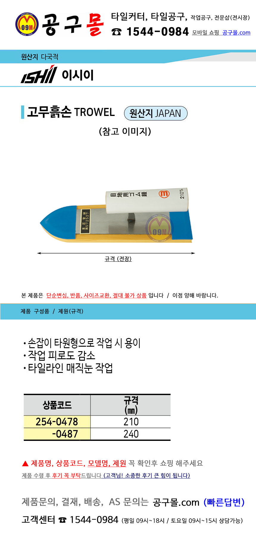 고무흙손 240mm 이시이,공구몰,타일공구, 미장공구, 254-0487