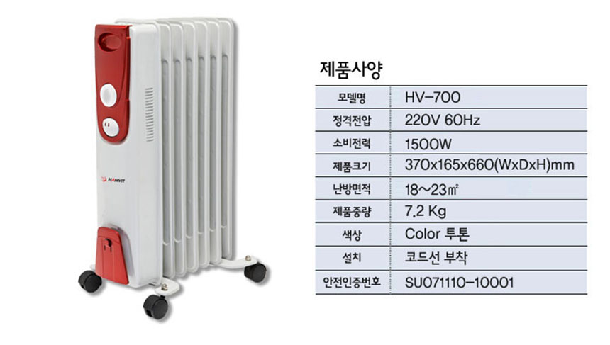 라디에이터 7핀 HV-700, 한빛시스템, 공구몰, 온풍기, 전기히터, HV700
