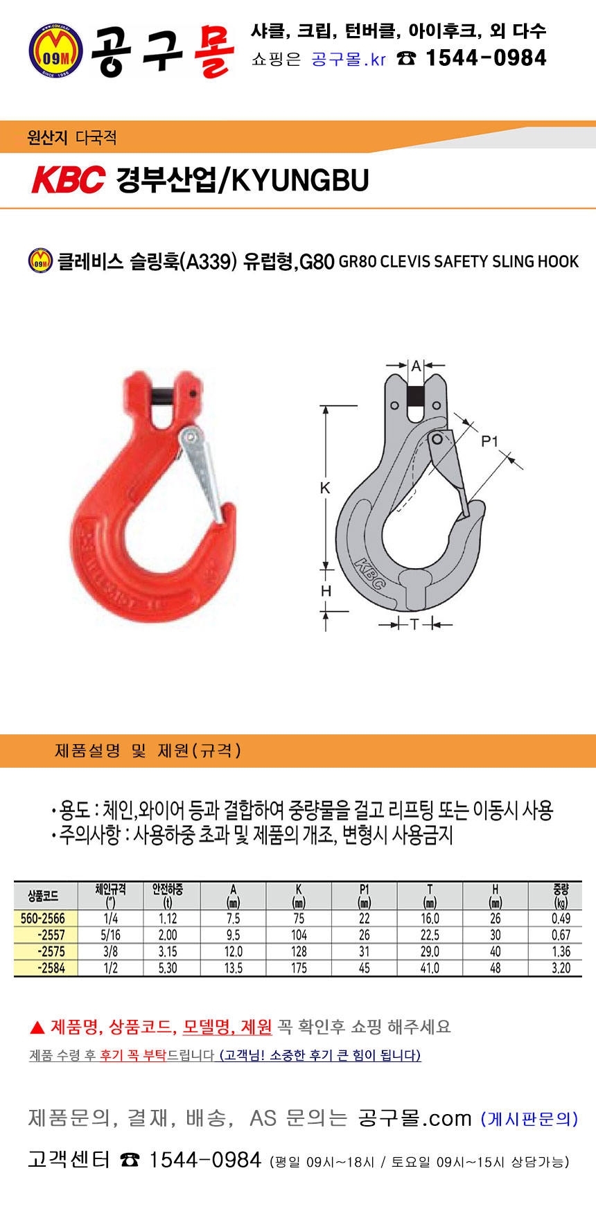 클레비스슬링훅(A339) 10mm-3/8(유럽형) KBC, 경부산업, 공구몰,560-2575