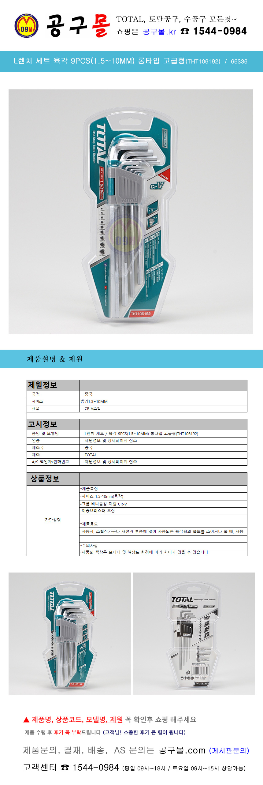 L렌치 세트 육각 9PCS (1.5-10MM) 고급형(THT106191), TOTAL, 토탈공구, 공구몰, 66335