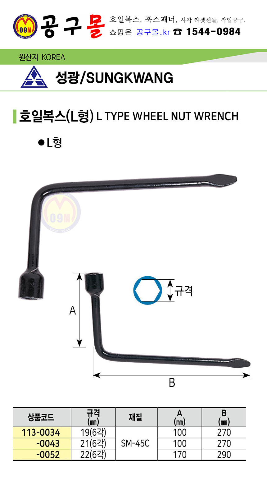 호일복스 19MM(L) 성광금속, 타이어 정비공구, 공구몰, 작업공구, 113-0034