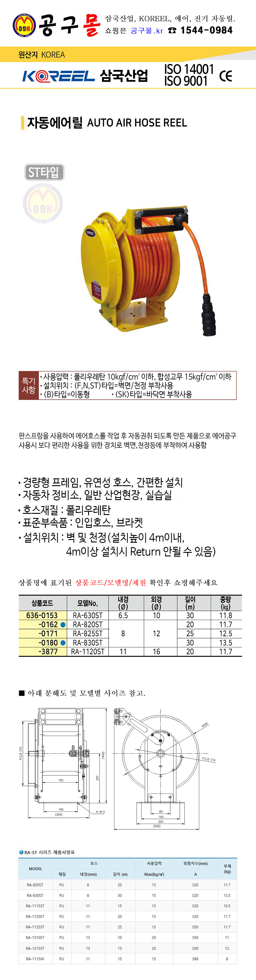 자동에어릴 RA-1120ST 삼국산업, KOREEL, 공구몰, 자동릴, 636-3877