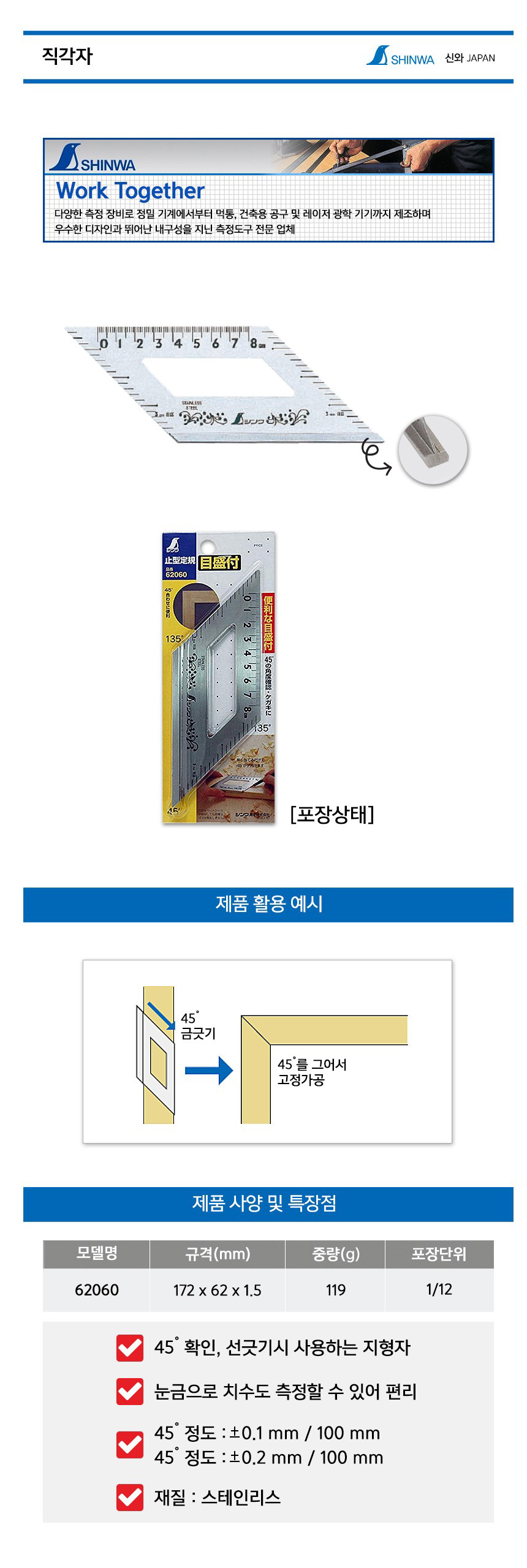 스퀘어(자유자) 62596 SHINWA-신와,직각자,연귀자,,목공구