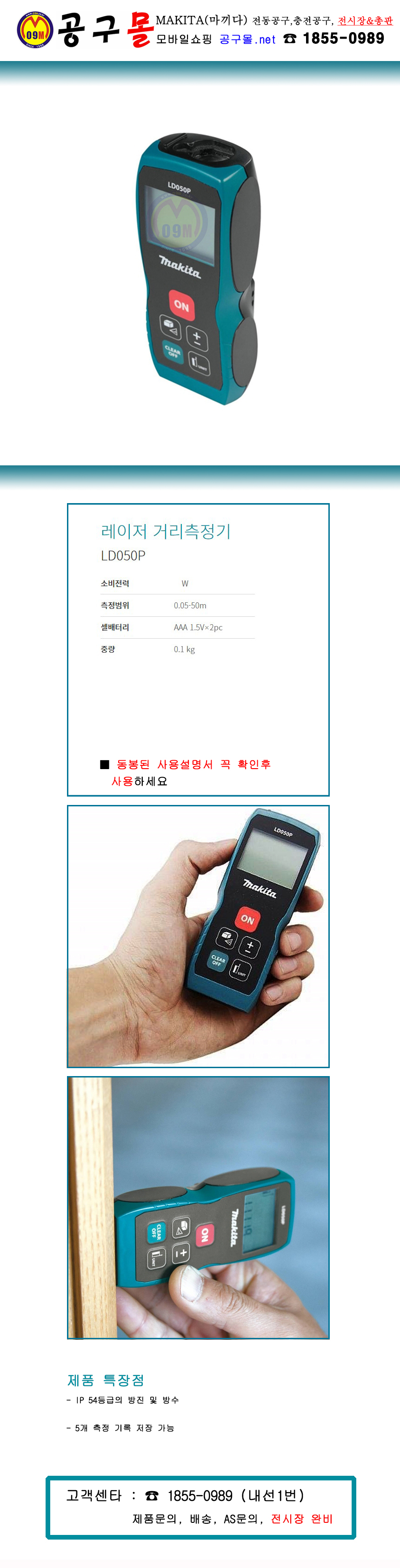 마끼다 레이저 거리측정기 LD050P (50M) MAKITA, 줄자, 높이측정, 레이저줄자, 공구몰